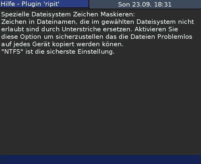 ripit Plugin Setupmenu Hilfe