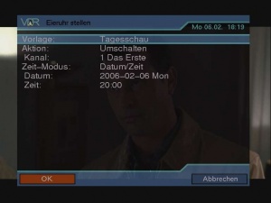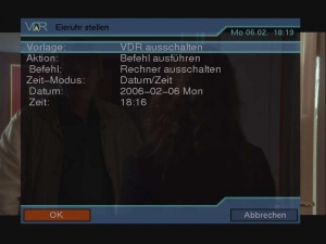Der Aufruf erfolgt über das VDR Hauptmenü. Im Menü 'Eieruhr stellen' wird der